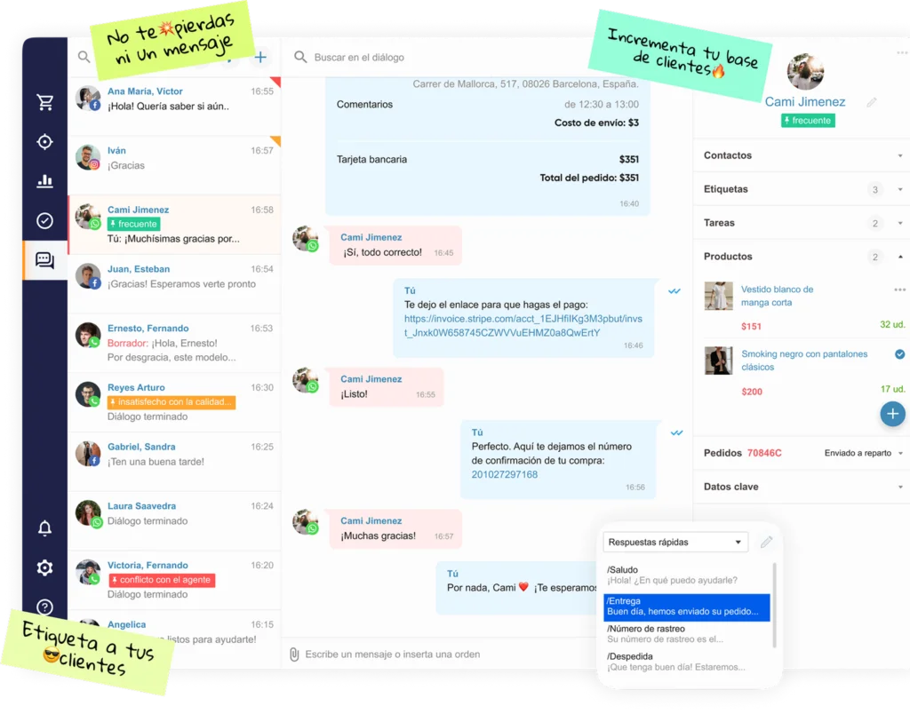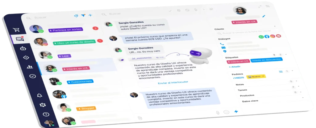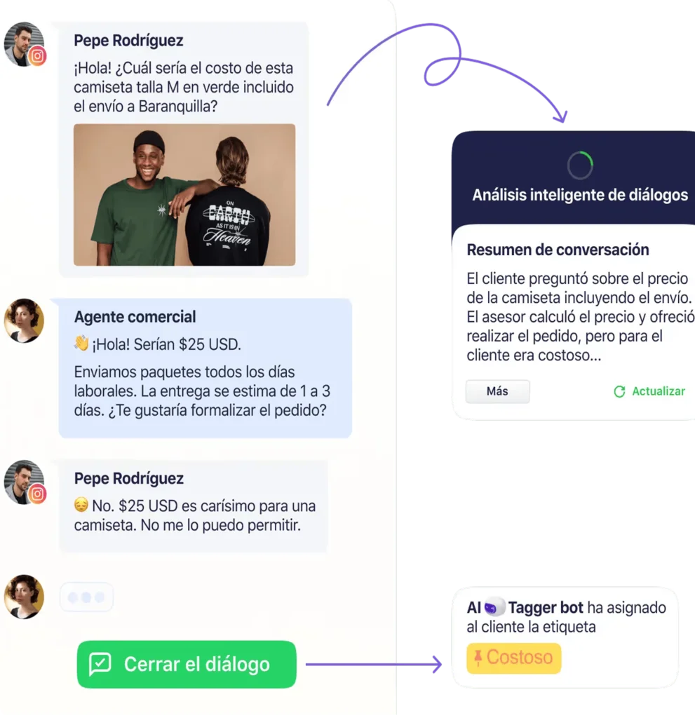 Ayuda a etiquetar al cliente en función del diálogo, así como a evaluar rápidamente el contenido de la conversación.